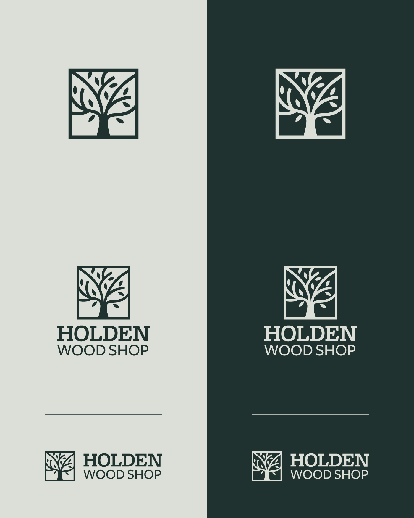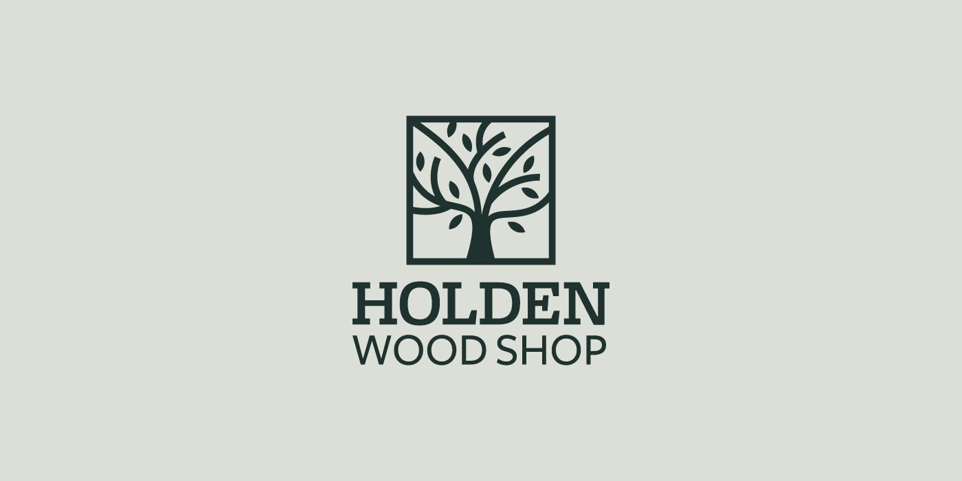 A logo that conveys fine woodworking, designed to blend the precision and strength of a square form with the warmth of natural wood shapes, expressing the great joy of crafting high-quality products made from exotic wood. The colors are muted, natural greens to reflect authenticity and sophistication.
